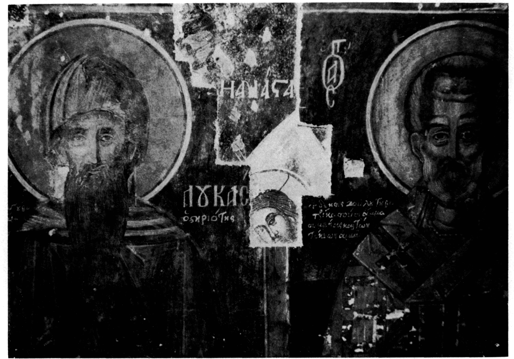 Dans la basilique à trois nefs d'Haghios Athanassios, restaurée en 1970-71, on a commencé l'année suivante le nettoyage des fresques. Sous le dernier état, daté par une inscription de 1773, on a découvert deux ou trois couches de peintures plus anciennes, telle une Descente aux Limbes qui avait été recouverte par deux figures de saints (fig. 31-32). ArchDelt 28 (1973) Chron., p. 76-77.