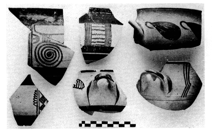 Cette année encore un abondant matériel stratifié vient préciser l'évolution typologique de la céramique au cours des dernières phases du HR III. Outre les vases déjà signalés on retiendra de nombreux fragments de plats à poissons et de vaisselle éphyréenne, un fragment de cratère orné d'une file de guerriers (v. ArchRep 24 [1977-78] p. 27, fig. 48) et plusieurs morceaux de pithoi à décor plastique. Parmi les petits objets il faut mentionner, en dehors des trouvailles du sanctuaire, un grand choix de figurines animales, deux sceaux lenticulaires, des perles en faïence, un peigne en os et quelques outils en bronze.