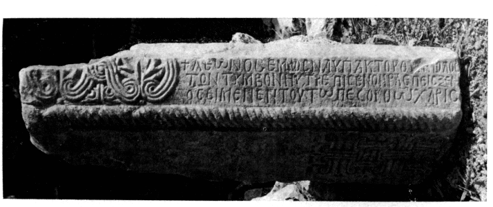 A l'occasion d'importants travaux de restauration plusieurs blocs de marbre remployés dans les remparts ont été inventoriés. La partie gauche d'un linteau, détachée par un particulier avant la dernière guerre mondiale, porte l'inscription métrique suivante (fig. 113) :