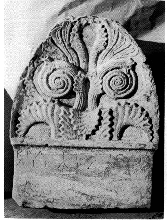 Outre les deux stèles votives déjà présentées dans le BCH 99 (1975), p. 651 et 657, il faut signaler, parmi les trouvailles de l'année 1971-72, une série de stèles funéraires. On y lit les noms suivants : Σουφρόνα, Νικασίλα, Κρατεισίπολις | Δικαιδαία (fig. 141) ; Άναξίλα, Νικείρατος, - - Εύβήου, Κλεόμαχος. ArchDelt 28 (1973), Chron., p. 337-339.