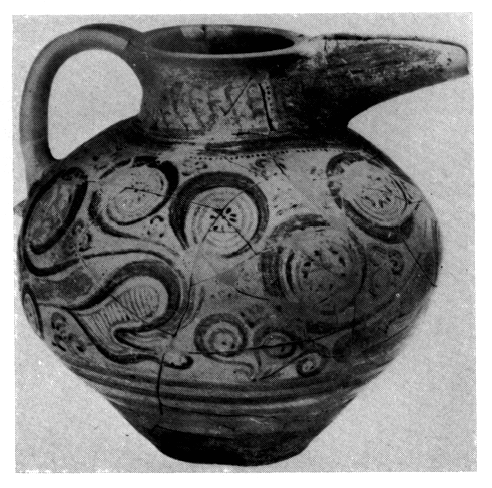 A l'Ouest, une pièce au sol en terre battue recouvert de plaques a pu être datée précisément grâce à une cruche MR II Β in situ (fig. 261). Ce sont là les premiers vestiges architecturaux assignables avec certitude à cette phase. Un mur et des lambeaux de deux sols superposés (MR I et MR III A) ont été mis au jour sur la lisière occidentale du sondage. Ergon (1977), p. 199-204.