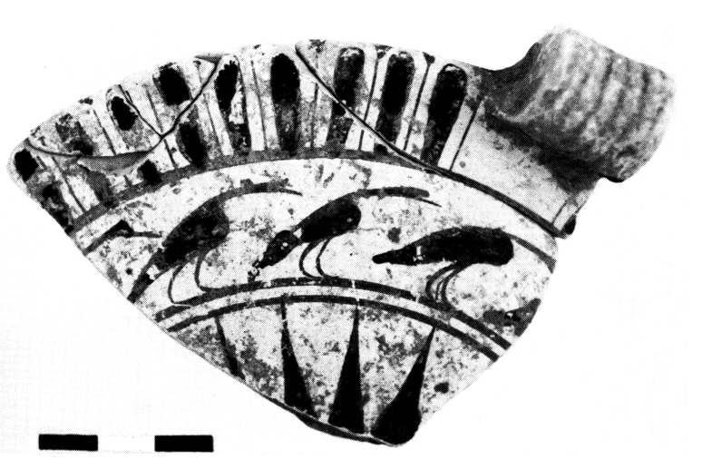 En poursuivant l'exploration de la terrasse, on a rencontré une vaste favissa qui a livré une grande quantité d'objets votifs en terre cuite, en fer, en plomb ou en bronze (fig. 97-98) ainsi que des fragments de vases de style laconien II et III (fig. 99).