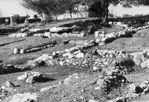 Keratea. Dimoliaki, Tsamali land. †M. Oikonomakou (Β’ ΕΠΚΑ) reports the completion in 2002 of excavation begun in 1995. A large (33 x 21.5m) but poorly preserved facility of uncertain use consists of a central courtyard with rooms leading from three of its sides (Figs 1,2). Four rooms (4.5 x 2.8-4.6m) open onto the courtyard; they had strong walls of irregular blocks Finds included fourth-century BC amphorae, lekanes, chytres and lopades, skyphoi, plates, kantharoi (Fig. 3), and a few clay and lead loom weights.
