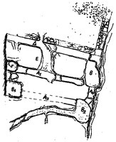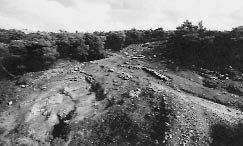300m south of the Kamariza area, a large sloping ore processing complex with a washery and feeding cistern was investigated, as were three level washeries with their cisterns and surrounding areas. Part of the modern mining road which runs above the ancient complex was removed. The level washery Π3 (Figs 1,2) is on ground sloping to the west, 11m from the large washery: only a small part of the walls of its feeding cistern and east wall are preserved. Cleaning of the west side of cistern Δ1 revealed an ancient road leading north-south into the complex.