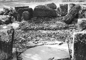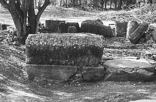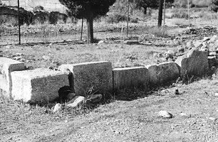 Mesosporitissa (Konstantinidi land). †M. Oikonomakou (Β’ ΕΠΚΑ) reports on the cleaning of the medieval tower near Mesosporitissa church. The tower contained many spolia: stones from funerary periboloi and houses, an olive press, and architectural members. An ionic capital and two column drums of the Athenian tropaion from the battle of Marathon were also recovered (Figs 1,2).Similar material, mostly from funerary periboloi, had also been assembled in the nearby military camp on Kato Souliou Street (Fig. 3).