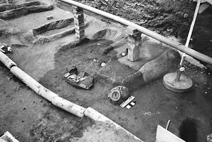 House 1: north of the cemetery was part of a four-roomed house (11 x 9.5m as preserved) below a layer of stones and tile. Finds include much domestic pottery.