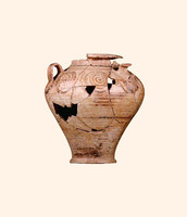 In sector II, to the south, was a group of chamber tombs built in LH I - II and used until LH IIIA1, to judge from the pottery which included restorable vessels (Figs 18,19). One tomb was used as a rubbish dump after the collapse of its roof. The upper layer of this contained a large quantity of broken vessels, pieces of wallpainting, terracotta figurines and an amulet.