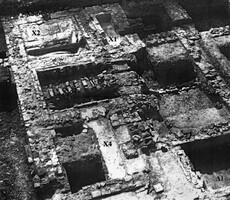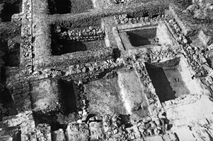 The building was preserved only to floor level: its precise form cannot be determined without full excavation, and the loss of the superstructure makes it impossible to restore patterns of communication between rooms. At least eight rooms were revealed, with those belonging to the bath lying on the north side.
