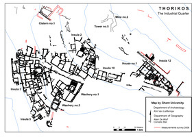 Thorikos. R. Docter and K. Van Liefferinge (Belgian School in Athens/Ghent University) report on excavation conducted in 2010 and 2011 in the basin of the largest cistern at Thorikos (1) above the Industrial Quarter (Fig. 1).