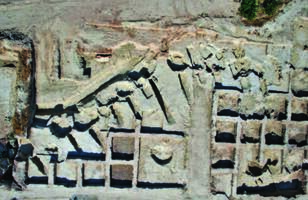 11. Some 160 graves of different types, including four chamber tombs, four funerary monuments, a drainage facility, and a building complex with 14 rooms. Chamber tomb III and funerary monument ΠΙ have on their west side a curved wall. Five rooms, 20 tombs, and part of the walls linked with water management (3 above) relate to this wall.