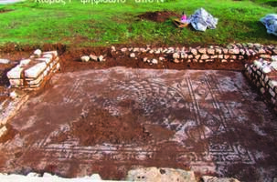 Chalikia, Ag. Georgiou. The IB’ ΕΠΚΑ reports the discovery of a Roman rural villa on the banks of the Louros river. Five rooms in the complex had mosaic floors. The associated baths preserve hypocausts and bath-tubs. The villa complex revealed successive phases of occupation until its destruction, probably by fire, in the fourth century AD.