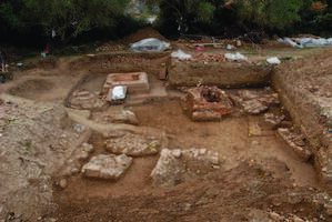 Mazarakia. The ΛΒ’ ΕΠΚΑ reports on rescue excavation for the construction of the road linking the Egnatia Odos with the national road from Igoumenitsa to Preveza, between the Karteri and Mesovounio junctions. Ca. 200 graves in a Roman cemetery (of the first-second centuries AD) were excavated, noting impressive funerary monuments, one of which preserved in situ an inscribed grave stele. The majority of burials contained numerous ceramic, glass, bone and metal offerings.