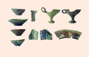 Iklaina. M. Kosmopoulos (ASA) reports on continuing excavation focused on the cyclopean terrace and surrounding area (Fig. 1). Two further small rooms of the building complex south of the terrace were revealed, containing LH IIIB pottery, painted plaster, a decorated terracotta offering table, and bronze sheet. Southeast of the rooms was a large refuse deposit (4.5m in diameter) containing ash, burnt ovicaprid and pig bones, animal figurines, a piece of lead leaf, painted plaster, many whole vessels and sherds – finds which in combination indicate the practice of open air rituals (Fig. 2). The terrace foundations were built of large stones and stone slabs: sherds in the foundation fill date to LH IIIA2/IIIB and LH IIB/IIIA1.