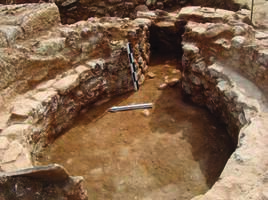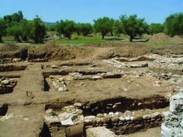 On the acropolis of Petalidi, rescue excavation revealed baths with floor mosaics and the foundations of large Late Roman buildings (fig. 3). On another property on the acropolis, were the foundations of houses or workshops and a Roman cemetery (fig. 4). A damaged tomb contained very rich finds of the first century BC to first AD.