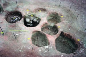 Mousata. A. Soteriou (Director, ΛΕ’ ΕΠΚΑ) reports the discovery of well-made pits (1m deep and 1m in diameter) cut into bedrock. These bothroi contained Final Neolithic pottery, animal bones, stones, rubbers and scrapers. The associated settlement has yet to be located.