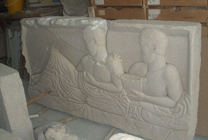 Lors de travaux de canalisations dans la commune de Périssa à Santorin, une stèle à relief d’époque romaine représentant deux figures masculines sur une klinè a été découverte. Les noms Mélès et Chariklès désignent respectivement l’homme à barbe de droite et le jeune homme de gauche.