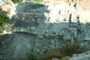 Argyroupolis. K. Giapitsoglou (28th EBA) reports on excavation inside the church of Ag. Kyriaki. The longer side-walls are reused from the caldarium of a Late Roman bath. Inside and outside the church are 12th-century cist tombs. Rescue excavation in the town revealed Byzantine walls and houses: a two-roomed glass-workshop, with a large quantity of glass-paste and vase fragments, is a unique find of the Early Byzantine period in this region.