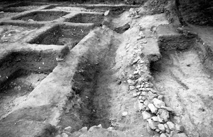 Dans la partie Nord du terrain et à l’Ouest du mur de terrasse, deux fossés parallèles ont été mis au jour : ils correspondent vraisemblablement aux fondations de bâtiments construits sur la terrasse.