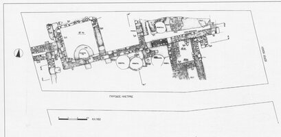 L’édifice principal a été fouillé sur une longueur de 16,87 m. Trois pièces ont été dégagées. L’entrée se trouvait au Sud, comme en témoigne un seuil et quatre bases de colonnes qui devaient soutenir un porche d’entrée. Le mode de construction des murs suggère une première datation aux IXe-Xe s. Les monnaies et la céramique recueillis sur le terrain indiquent que la fréquentation de l’édifice s’est poursuivie à l’époque médiobyzantine. La découverte de céramique d’époque ottomane dans les trois dépotoirs fouillés suggère même une plus longue durée d’occupation.
