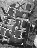 Dans la partie centrale du terrain, on a mis au jour les vestiges d’un édifice (dim. 13,5 x 20 m) constitué de deux corps de bâtiments aménagés autour d’une cour péristyle, dont le sol est pavé de petites dalles de terre cuite prises dans un mortier. Ces deux corps de bâtiment correspondent à deux phases de construction. Les 32 murs dégagés délimitent vingt pièces et espaces. L’épaisseur de ces murs et de leurs fondations suggère la présence d’un étage. Dans la partie Nord de la cour, une citerne a été construite. Au centre de la cour, un muret appartient à un état postérieur : la partie Sud de cet espace semble avoir été couverte alors. Puis l’installation d’un seuil témoigne de son occupation comme pièce fermée.