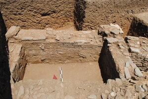 L’enlèvement de la première berme a permis de dégager le prolongement du mur Sud du bâtiment à propylée, ainsi que le mur au Sud du bâtiment « paléochrétien » qui fut construit par dessus, utilisant une partie de ses matériaux en remploi. Bien que l’angle Sud-Ouest de ce bâtiment « paléochrétien » ne soit pas conservé, la datation de l’édifice a pu être située dans la deuxième moitié du IIIe s. apr. J.-C.