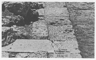 Leukas, Leukas-Nidri road, Kalligoni junction. G. Pliakou (ΙΒ' ΕΠΚΑ) reports the discovery of a 38m-long stretch of the north arm of the city fortification circuit (Fig. 1: 3). The main phase is isodomic (in emplekton, with two worked faces, rubble full, and cross-connectors). A small section at the northeast edge of the excavated area differs in appearance with the introduction of polygonal masonry on a different foundation (it is not yet possible to ascertain whether this is an earlier construction, although this is likely, given that similar masonry is evident to the west and elsewhere in the circuit). The isodomic phase of construction appears to have been a cursory and possibly hasty event, using unworked blocks and spolia. It may be linked to the siege and capture of the city by Flamininus in 198BC. Finally, in the highest level was the millstream of a now derelict 19th-century watermill, which was operative into the first decades of the 20th century.