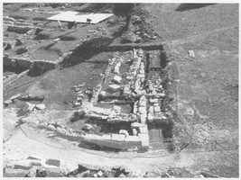 In the eastern part of the area a long, poorly built wall supported at the northern end a rectangular kiln, preserving part of the eschara. The destruction level of the eschara area contained tile fragments, a few sherds of plain domestic pottery and many braziers.