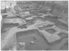 Sixty-five closely packed tombs, variously oriented, mostly held child burials – they included 27 tile graves, 23 pits, two cists, five sarcophagi, four inurned cremations, two tombs of idiosyncratic form and a case of reburial of bones. The rich grave goods chiefly comprised pottery, bronze items and vessels, and coins, and many grave stelai were preserved in situ with or without their bases but mostly without inscriptions. Several were re-used in tomb structures. Structures of unfired clay and tile, and the burnt remains of offering pyres were examined. The structures contained large quantities of pottery (vessels for storage, drinking and offerings) but no bone, leading to their association with a funerary cult.