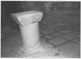The Ionic bases of the colonnades on the east and west of the monument were revealed, as were the threshold blocks of the south and central doors in the west wall which communicated with the narthex. In the sanctuary apse was the two-stepped semi-circular synthronon, the upper step of which remained visible above the later floor level. This consisted of a cement and stone core clad with terracotta tiles, with alternating red and blue diagonal lines painted on the face. A stone column drum in the centre of the sanctuary supported a massive Early Christian table top which formed the base of the great altar. In the altar area were thr ee floor levels which predated the tiled floor. Associated with the most recent of these was a brick structure, probably an ossuary, at the north end of the axis of the apse of the side altar.