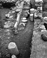 Située dans la partie Est de la zone explorée, la ruelle, d’orientation Nord-Sud (long. 20 m ; larg. 1,20 m ; fig. 2). Quatre tambours de colonnes y ont été découverts épars. Deux d’entre eux ont été découverts devant l’entrée de l’espace Γ, les deux autres plus au Nord, de l’autre côté de la ruelle.