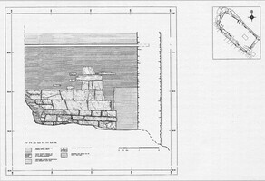 La maison, située du côté Nord-Est du Kastro, inclut une partie du mur d’enceinte de la ville antique. Les fouilles sont descendues, sous une canalisation d’égout récente, jusqu’à un niveau régulier, composé de pierres mêlées d’une terre rouge, et auquel étaient associée de la céramique datée du Géométrique Récent à la période hellénistique. Dégagé jusqu’au niveau du rocher, le mur de l’enceinte antique se dressait là encore sur une hauteur de 3,25 m et était épais de 4,50 m. Huit assises étaient visibles. Les trois assises inférieures présentaient une hauteur totale d’1 m, et leurs pierres étaient dressées selon une forme grossièrement trapézoïdale. Les assises supérieures, en retrait de 0,10 m par rapport aux assises inférieures, étaient pour la plupart hautes de 0,45-0,50 m, sauf la 7ème (0,30 m).