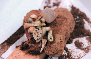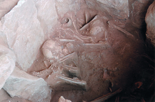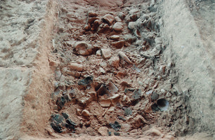 Preliminary results indicate that the pit belonged to an earlier repaired tomb, supplemented with a rudimentary threshold and used, after cleaning, only for the reburial of bones. The articulated bones indicate that some flesh was preserved, while the figural beads together with the seal must be from the personal ornament of an important figure in the community.
