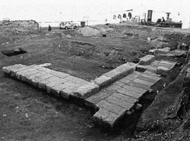 Sur le terrain Maneta, immédiatement au Nord, on a également mis au jour une canalisation maçonnée, orientée Est-Ouest, pour l’évacuation des eaux de pluie (long. 10 m ; larg. 1,30 m ; fig. 3).