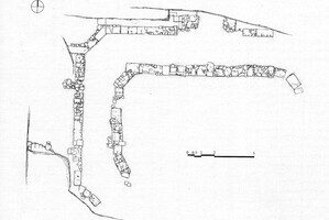 Contre le côté Est du bastion, on a mis au jour les fondations de plusieurs constructions plus anciennes : un mur, une partie d’un sol dallé de plaques de marbre, un seuil en marbre.