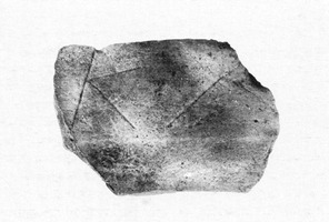 Deux bâtiments construits en moellons ont été dégagés. Le mobilier recueilli en surface compte un peson, des tessons de céramique commune et de céramique vernissée, une monnaie de bronze (oxydée), une pointe de lance, un tesson de ruche en terre cuite, des lamelles d’obsidienne et un fragment de tuile inscrite portant les lettres K et A (fig. 1). Au Sud de la colline et en dehors de l’enceinte fortifiée, on a découvert une canalisation maçonnée d’une largeur de 0,37 à 0,50 m et conservée sur une longueur de 3,10 m.