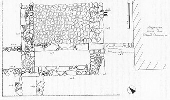 Les murs de ce bâtiment étaient constitués de deux parements en blocs taillés à des dimensions variables et d’un blocage de moellons et de tuiles. Le sol de la plus grande des pièces a été dégagé : il était pavé de pierres plates prises dans du mortier de chaux. L’édifice peut être identifié à une tour.