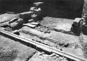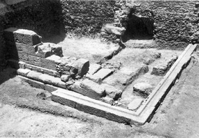 L’assise de réglage et la crépis à trois degrés de la partie Sud-Est en ont été mis au jour, de même que le mur Sud, sur une hauteur de trois assises construites en appareil régulier.