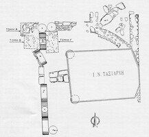 À Lesbos, dans la région agricole située entre les villages d’Aghia Paraskévi et Napi, A.-Chr. Loupou (14e éphorie des antiquités byzantines) a découvert en 2001 les vestiges de murs appartenant à une basilique protobyzantine (Ve-VIe s. apr. J.-C.). Au-dessus des ruines du sanctuaire de l’église, on a construit en 1959 une chapelle dédiée au Taxiarque (fig. 1).