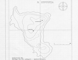 Sur l’îlot de Pergousa, à l’Ouest de Nisyros, M. Filimonos-Tsopotou (XXIIe éphorie des antiquités préhistoriques et classiques) rend compte de la découverte (et du relevé) de deux tours défensives situées sur le sommet de deux collines, distantes de 420 m environ (fig. 1).