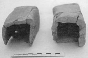 Les fouilles dans le reste du terrain ont mis au jour une installation artisanale du début de l’époque romaine dotée d’un petit four céramique (2 x 1,55 m) en forme de fer à cheval, d’un pithos portant une empreinte de sceau avec un nom peu lisible, et d’un espace pavé. Parmi le mobilier, constitué pour l’essentiel de céramique domestique, on note la présence d’ustensiles en terre cuite de forme rectangulaire allongée (long. 0,22-0,25 m, larg. 7-7,5 m), munis d’un bec cylindrique (fig. 2-3) ; ces objets sans parallèle connu jusqu’à présent, pourraient avoir servi de fumigatoires pour les abeilles.