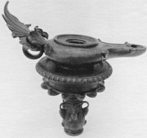 Le mobilier recueilli était assez riche : vases en terre cuite et en verre, lampes en terre cuite et en bronze (fig. 2), figurines en terre cuite, outils et ustensiles en bronze et en fer, nombreuses monnaies en bronze hellénistiques et romaines, à quoi il faut ajouter des trouvailles provenant des phases d’habitation antérieures (de l’Âge du Fer à l’époque hellénistique).