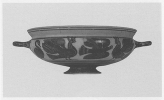 Lekka-Gotsi property (km marker 1717). Thirty-seven limestone sarcophagi from an Archaic cemetery were found, seven without cover slabs, with no consistent orientation. Most contained no offerings, although two (17 and 18) were well-appointed. Offerings included Corinthian skyphoi, trefoil-mouthed oinochoae, amphoriskoi, pyxides, phialae and aryballoi. A bronze lebes found beside tomb 25 contained pomegranate seeds, a piece of matting and Corinthian aryballoi.