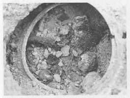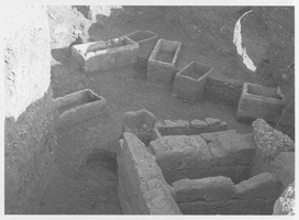 Soukouli property (km marker 0+474). Excavation of a Roman building complex revealed no further building remains south of those previously exposed. Thirty tile graves, three pit graves and two enchytrismoi were found inside and outside the building. Most contained no offerings, but the few items in the tile graves included bronze coins, bone needles, terracotta and glass unguentaria, phialae and lamps.