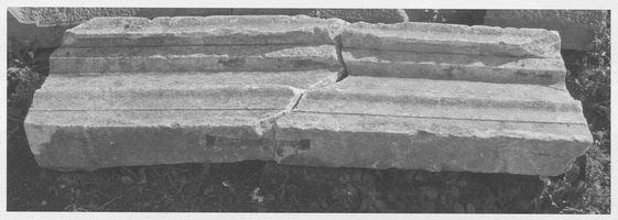 Public road to Gliati: just south of the junction with Theatre Street on the north side of the road was a stretch of ancient road, part of a plastered wall, limestone blocks, roof tiles, and a disturbed Roman tomb (from which glass lachrymateria were collected). A section of a Roman water channel parallel to the road was of the same construction as that at Plakes of which it is a continuation. A stone base for a funerary stele was also found.