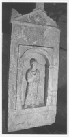 Plakes (public road to Gialasi): a large Late Roman retaining wall (with a spur to the north) was found 66m south of the intersection with Asklepiou Street. This contained many spolia from earlier buildings, large orthostats, marble grave stelai (including a Roman stele, inscribed ΑΛΕΧΑ/ΧΑΙΡΕ, depicting a naiskos with inside it a male figure wearing a himation), and the marble surround of a funerary monument. This wall too was likely part of the defences which protected the southwest part of the city and the harbour when the river to the west of it flooded, noting that it was founded on riverine gravels, and that it was later demolished by floodwaters. Further north along the road was a column from a Roman aqueduct, with a section of the aqueduct itself slightly further north.