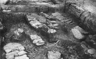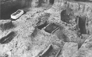 Au Nord du village moderne de Kalamaki, S. Sdrolia (7e éphorie des antiquités byzantines) a mené en 2001 une fouille de sauvetage sur une étendue de 600 m2 au lieu-dit Gouva, dans le cadre des travaux de mise en eau du lac de Karla et de la construction du collecteur 3. À cette occasion, elle a mis au jour les vestiges d’une occupation médiobyzantine ainsi qu’une nécropole de même époque, dont 50 tombes à ciste ont été dégagées (fig. 1-2).