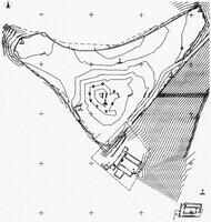 À l’Ouest de la basilique, on a dégagé un segment de rempart protobyzantin, construit en blocs non taillés et en blocs de remplois liés par du mortier. L’épaisseur du mur varie entre 1,30 et 1,60 m. Une tour carrée a été repérée dans le secteur Sud-Est de l’acropole. Le mobilier recueilli compte de nombreux tessons, un poids en plomb, une lance en fer et trois plaques en os portant des traces d’inscription.