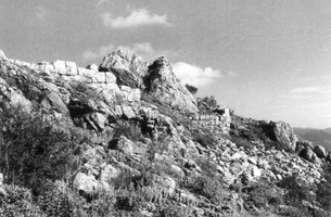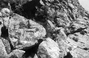 On signale également la localisation d’une stèle en relief sur la paroi rocheuse (fig. 3), ainsi que de plusieurs encoches pour la disposition de stèles.
