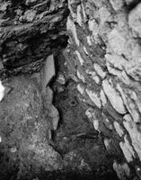 A disturbed tile grave (Figs 1-3) in the corridor of the house contained a few burnt bones, black-glaze sherds (skyphoi, bowls and plates), a small red-figure chous with a depiction of a child, a small lebes, lamps, a stone egg, an iron hook, bronze sheet, a ring, an earring, two pyramidal loom weights, and six bone astragaloi. The burial, probably of a young girl, dates to the last quarter of the fifth century BC, and may provide a terminus post quem for the reorganisation of the area into residential space in the late fifth century.