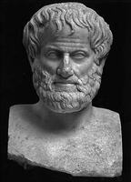 The picture of the east side of the street is quite different: walls of the sixth century AD form a space 2.6m wide (length unknown) with rough and cut stones, zones of brick, and mortar. Fragments of wall-painting inside the room had vertical strips of black on a white background. The floor was not identified, but is estimated to have been ca. 1.2m below the road surface, making the area semi-subterranean. The room was sealed with a destruction layer of the early seventh century AD with evidence of strong burning, containing a marble herm-bust of Aristotle (Fig. 6).